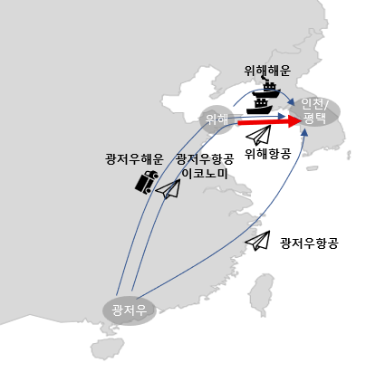 - 광저우물류센터 : 광저우항공이코노미 -> 광저우항공(홍콩) 또는 광저우해운