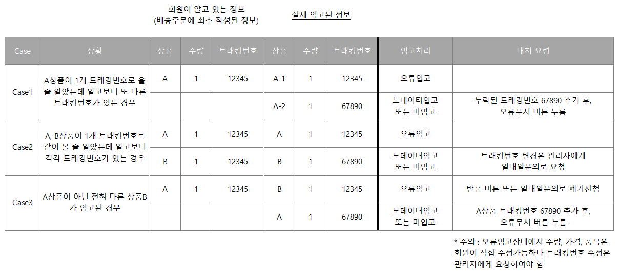 1) 주문서수량과 실제입고수량이 다르거나 상품 자체가 잘못 온 경우
